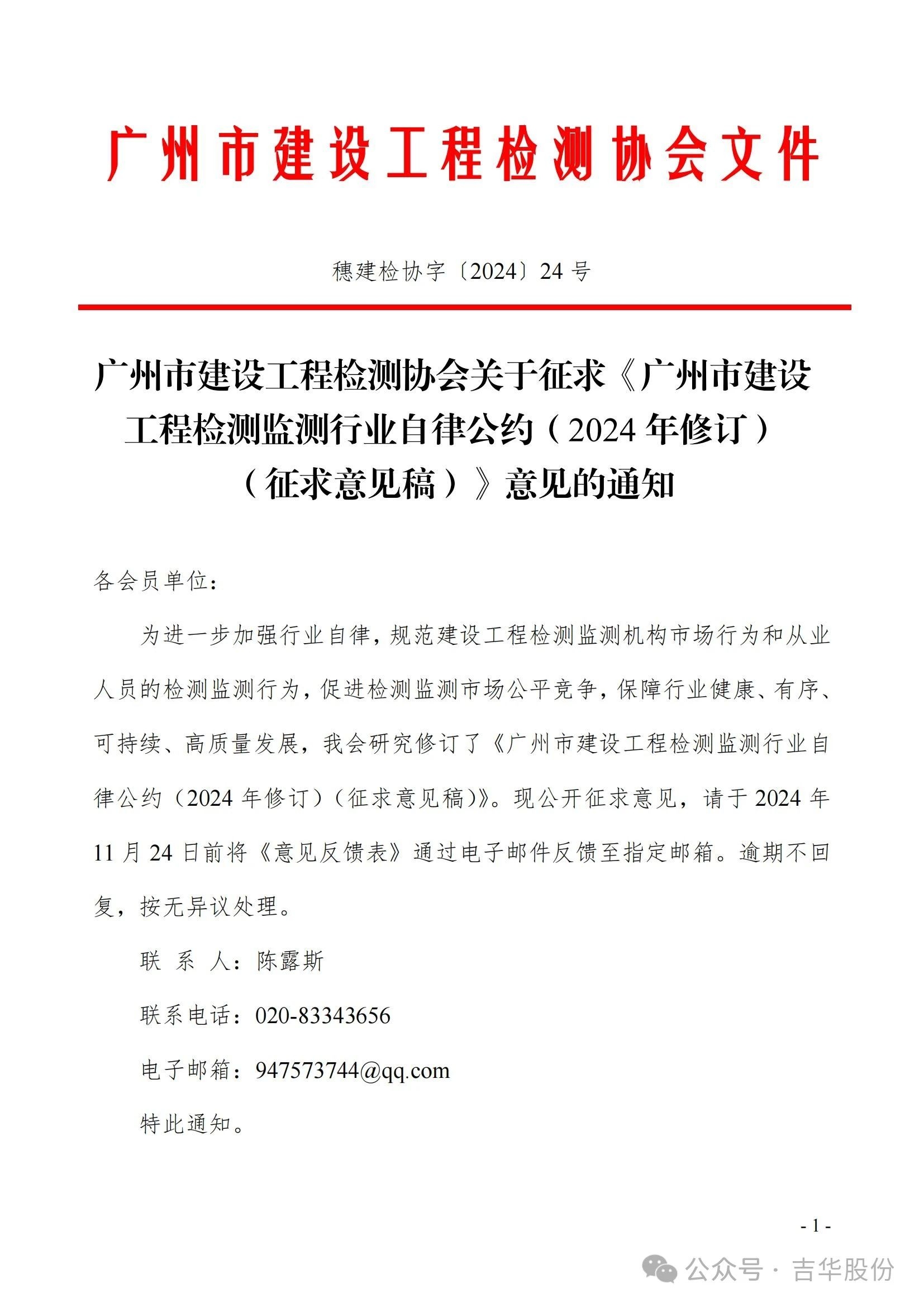 资讯 | 广州市建设工程检测协会就《广州市建设工程检测监测行业自律公约(2024年修订)》向社会征求意见